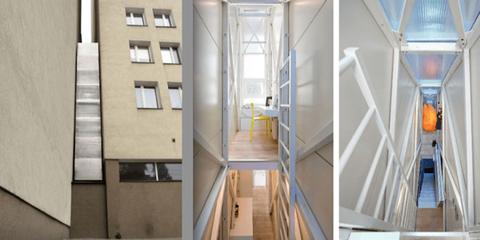 Her şey Polonyalı tasarımcı Jakub Szczesny, Varşova’ da bir cadde üzerinde bulunan yan yana iki binanın arasındaki boşluğa küçük bir ev yapmaya karar vermesiyle başladı.