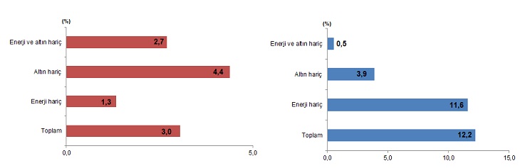 Aralık ayında enerji ürünleri ve parasal olmayan altın hariç ithalat %0,5 artarak 21 milyar 591 milyon dolardan, 21 milyar 704 milyon dolara yükseldi.