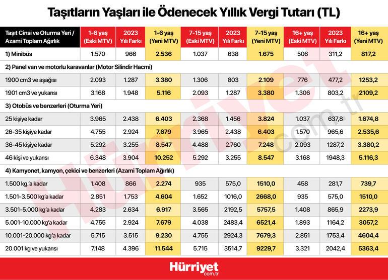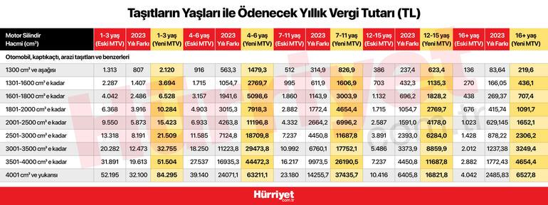 - 1801 – 2000 motor silindir hacmi olan 1-3 yaş aralığındaki araçların vergisi 11 bin 309 lira olacak.