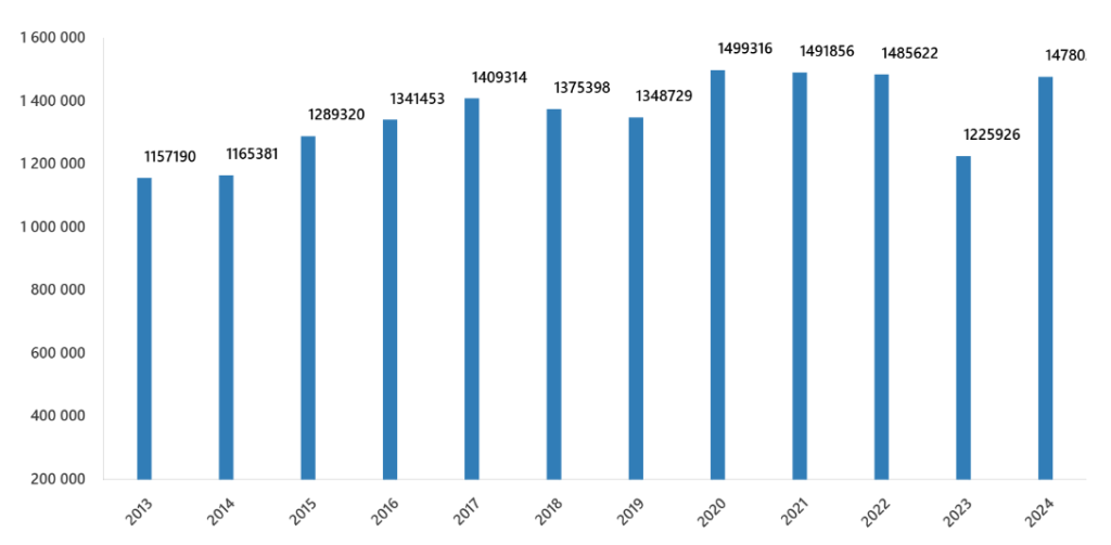 Türkiye İstatistik Kurumu (TÜİK) 2024 yılı tamamı itibarıyla konut satış istatistiklerini açıkladı. Buna göre, Türkiye genelinde konut satışları 2023 yılına göre yüzde 20.6 artış kaydederek seneyi 1 milyon 478 bin 025 adetle kapattı.