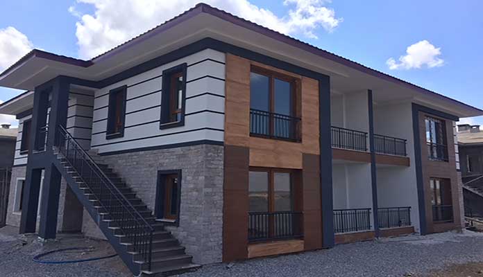 2 katlı bloklar halinde müstakil evler konseptinde tasarlanan ve her blokta 4 dairenin olduğu projede yöresel mimariden etkilenerek zemin kat seviyesinde taş kaplamalara, ikinci katların dış cephelerinde ahşap görünüm veren kaplamalar, geniş pencereler kullanıldı ve balkonlara yer verildi.