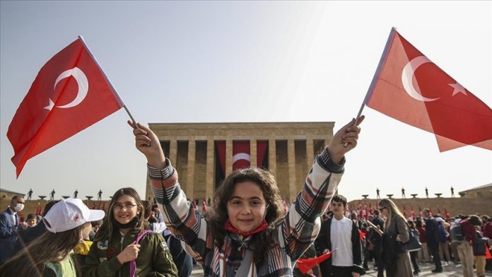 Türkiye Büyük Millet Meclisi’nin kuruluşunun 102. yıl dönümü ile 23 Nisan Ulusal Egemenlik ve Çocuk Bayramı dolayısıyla Anıtkabir’deki ilk törene Milli Eğitim Bakanı Mahmut Özer ve 81 ilden gelen çocuklar katıldı.