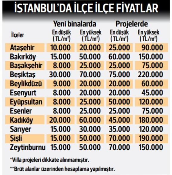 Yeni binalarda konutların metrekare fiyatları İstanbul’da 8 bin, Ankara’da 3 bin, İzmir’de 5 bin liradan başlıyor..