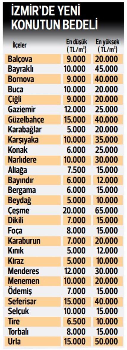 İstanbul’da yeni inşa edilen bir binada metrekare satış fiyatı 8 bin liradan başlıyor, 60-70 bin liraya, hatta bazı bölgelerde 200 bin liraya kadar çıkıyor. Araştırmaya göre sitedeki projelerde en düşük metrekare fiyatı artık 20 bin lira. Yani site içinde yeni bina olsun diyorsanız, 100 metrekarede 2 milyonun altında seçenek yok. Markalı konutta metrekare fiyatı inşaatın kalitesi ve lokasyona bağlı olarak 200 bin lirayı da aşıyor. Maliyet artışı il bağımsız tüm sektörü etkilediği için İzmir ve Ankara’da da yeni ev almak zorlaştı. Başkentte en düşük metrekare fiyatı 3 bin, en yüksek 40 bin lira. İzmir’de ise 5 bin liradan başlıyor, 65 bin liraya çıkıyor. Rakamların ulaşılabilir olduğu yerler ise şehir merkezinden uzak olmasıyla dikkat çekiyor.