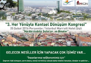 “Sürdürülebilir Şehirler ve Binalar” başlığı altında “3. Her Yönüyle Kentsel Dönüşüm Kongresi” Marriott Hotel Şişli de MANAGEMENT PLUS DANIŞMANLIK VE EĞİTİM tarafından düzenlenecek olan kongreye, Çevre ve Şehircilik Bakanlığı ve İMKON (İnşaat Müteahhitleri Konfederasyonun) destekliyor.