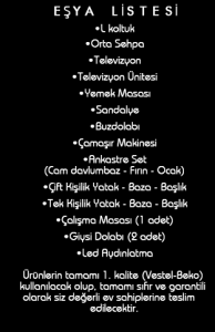 Eşya listesi şöyle: