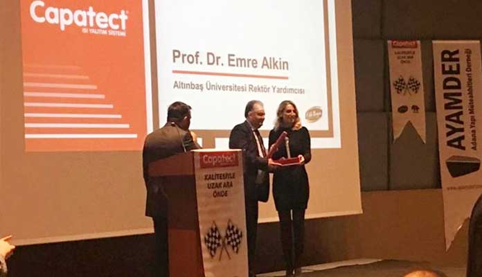 “Yalıtım Buluşması” programın sonunda AYEDAR tarafından katkı ve katılımlarından dolayı Altınbaş Üniversitesi Rektör Yardımcısı Prof. Dr. Emre Alkin ile Filli Boya Yalıtım Pazarlama Müdürü Işıl Aksoy’a plaket verildi.