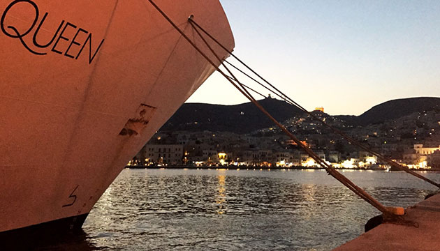 Çeşme kalkışlı turumuzun ilk durağı Syros adası oldu. Çeşme’den 5 saat süren bir gemi yolculuğuyla Syros Adası’na akşam 20.30’da ulaştık. Limanla merkez arası yürüme mesafesi 5 dk kadar yakındı.