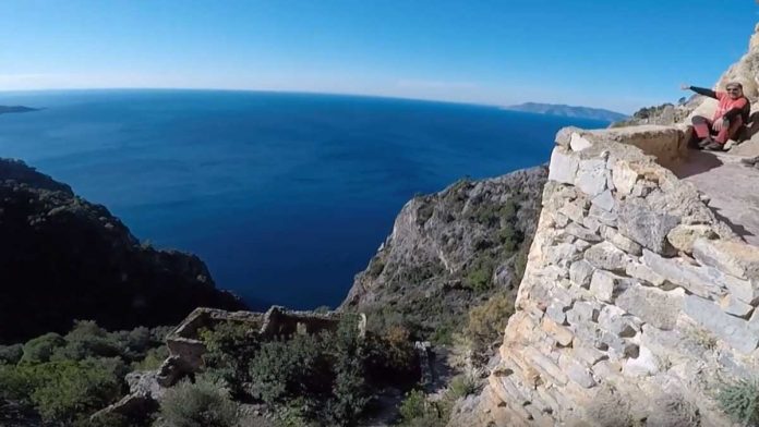 Afkule Manastırı’ndan açık havada bakıldığında Rodos Adası’nı görmek mümkün. Ege’nin masmavi sularına bakan manastırın içme suyu deposu da bulunuyor.