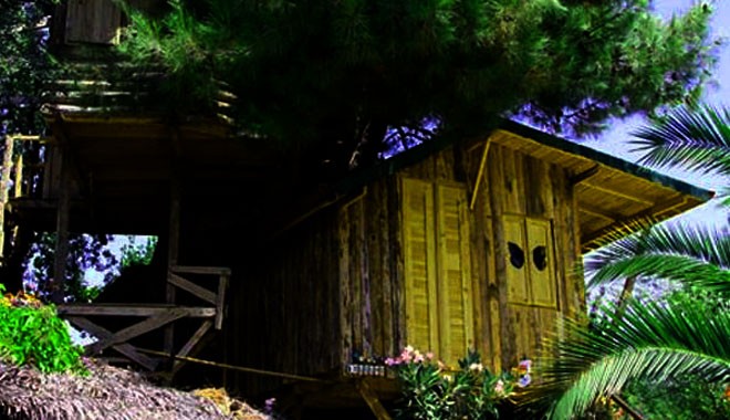 Yusuf Soku, iki yıl önce arazisine ev yapmak istedi. Alanda yan yana bulunan çam ve meşeyi kesmeye kıyamayınca farklı bir çözüm bulan Soku, ağaçların arasına iki katlı ahşap ev yaptırdı.