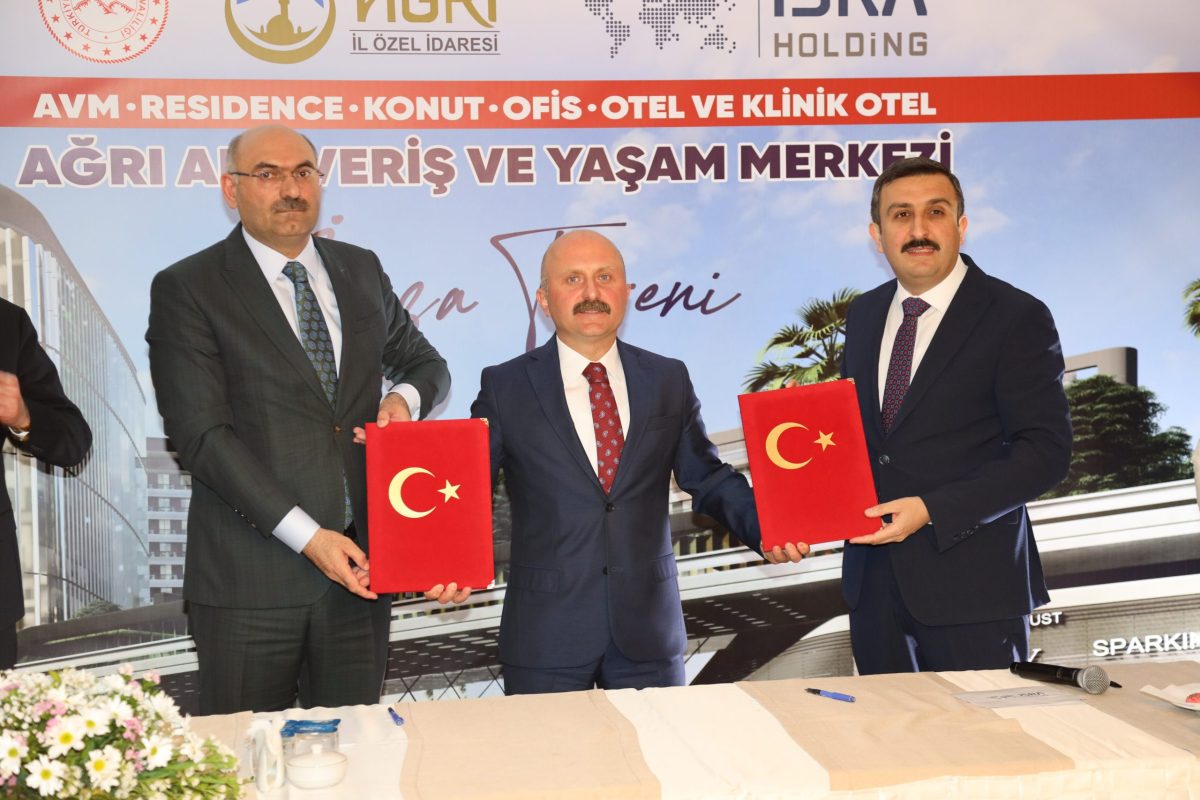 İçişleri Bakanlığı – Ağrı Valiliği İl Özel İdaresi ile İsra Holding işbirliğiyle bölgenin ilk karma konseptli yatırımı olarak Ağrı’da geliştirilecek proje için protokol anlaşması; Ağrı Valisi Dr. Osman Varol ve İsra Holding Yönetim Kurulu Başkanı Abdurrahim Tavlı’nın katılımıyla imzalandı.