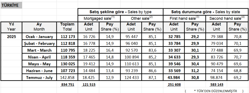 Sayın Sektör yetkilileri, Temmuz verileri ışığı altında 2025 yılı konut satışları için ilk planda sevinecek birileri var ise; 2. El pazarına derinlik ve kurumsallık kazandıran emlak dernek / platformları, emlak ofisleri, konutunu satan ve iyi şartlarda aldı ise alabilenlerdir.