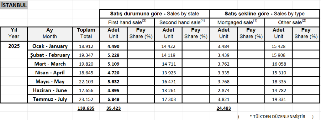 Türkiye’ nin inşaat sektörüne yön veren, sayıları binler ile ifade edilen inşaat firmalarının, proje geliştiricilerinin olduğu 18 milyonluk İstanbul’ da 2025 yılı içinde 1.El / Projelerden satılan 35.423 adet konut satışına sevinmeden, bir daha düşünmemiz lazım…