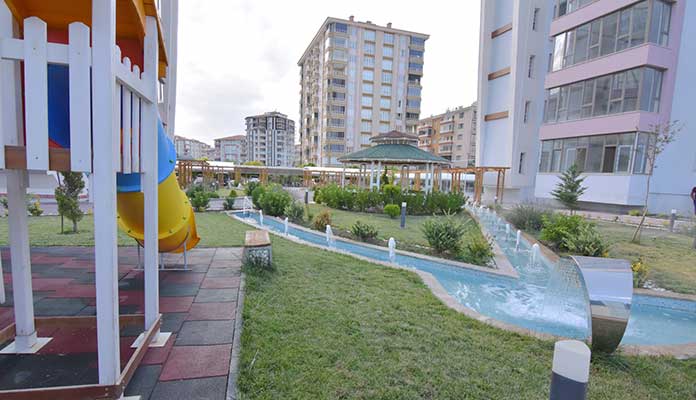 • Peyzajlı ortak yeşil alan, süs havuzu, yürüyüş yolu, açık havada satranç