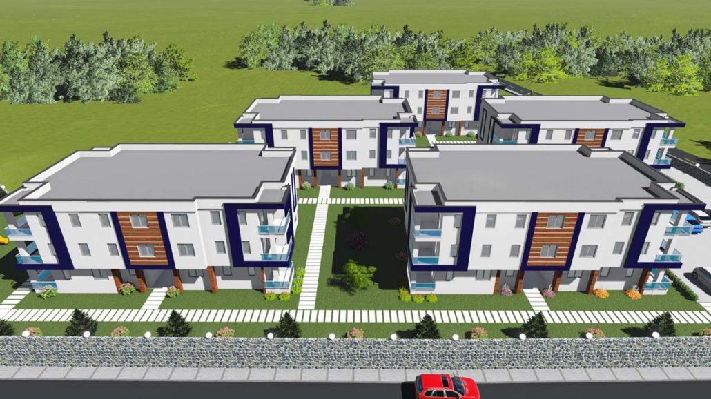 Projede 2+1 ve 3+1 kat planlarında 60 daire inşa edilecek.