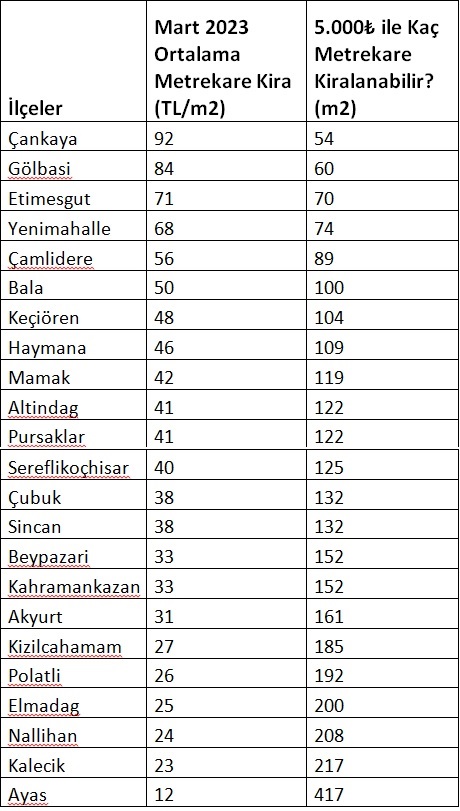 Ankara’nın kira değeri en fazla artan ilçesi Çubuk, en yüksek kira değeri ise Çankaya.