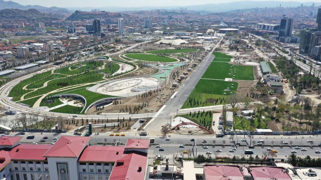 Ankara’da Atatürk Kültür Merkezi’nin de içinde yer aldığı Millet Bahçesi projesinin tamamlanması için gün sayılıyor. Çevre ve Şehircilik Bakanı Murat Kurum, incelemelerde bulunduğu Atatürk Kültür Merkezi içindeki Millet Bahçesi hakkında bilgiler verdi. Toplam proje alanının 637 bin metrekare, yeşil ve açık alanların 601 bin metrekare ve yapısal kapalı alanları 35 bin metrekare olduğunu belirtti. Millet bahçesinin içinde kıraathane, kütüphane, dinlenme alanları, hobi bahçeleri, çocuk oyun ve spor alanları, kapalı otopark gibi yerlerin de bulunacağından bahsederek, 760 bin metrekarelik alanın tramvayla da gezilebileceğini kaydetti. Bakan Kurum, yapılacak millet bahçesinin deprem meydana gelmesi halinde de toplanma alanı olarak kullanılacağını belirtti. Projenin yüzde 86’sı tamamlandı.