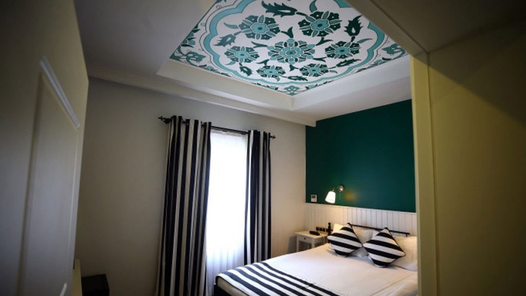 Her yatak odasını farklı renklerde tasarladıklarını dile getiren Sunar, cami minarelerinin süslemelerini yapan nakkaşların her odanın tavanına farklı desenler çizdiklerini belirtti.
