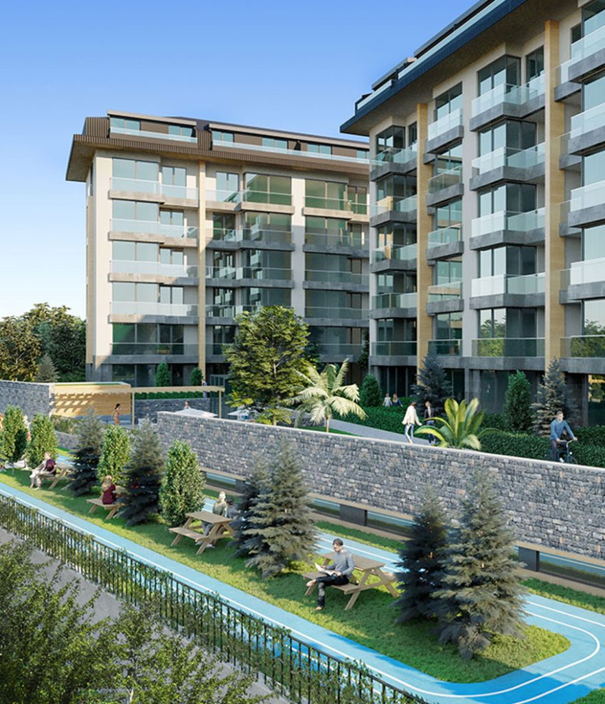 1+1, 2+1 ve 3+1 kat planlarında toplam 72 daireden oluşan projenin özellikleri ve sosyal donatıları şöyle: