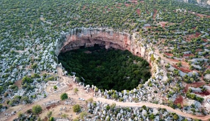Mersin’in Silifke ilçesi merkezine ortalama 19 kilometre mesafede yer alan, karstik oluşumuyla dikkat çeken, 70 metre derinliğinde, 100 metre genişliğindeki Aşağı Dünya Akhayat Obruğu keşfedilmeyi bekliyor.