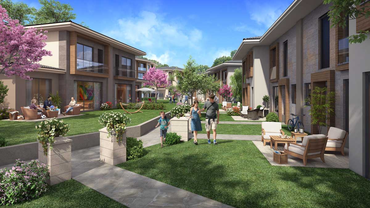 Projede bahçeli villaların yanı sıra 2+1, 3+1 ve 4+1 kat seçeneklerinin sunulduğu daireler de bulunuyor.