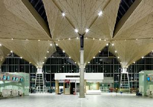 Özellikle tüm ana terminali kaplayan mega strüktürün tavanı, geometrik olarak bir ilk olarak tanımlanabilir. Üçgen panellerden oluşan zor geometriye sahip monümental yapısı, bina görselliğine etkisi ile önemli ve yenilikçi bir tasarım olma özelliğini taşıyor.