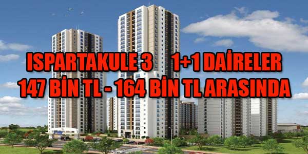 Avrupa Konutları Ispartakule 3 projesinde 1+1 daireler 147 bin TL- 164 bin TL arasında