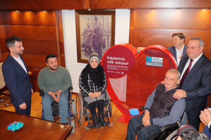 Anadolu Yakası İnşaat Müteahhitleri Derneği (AYİDER), engelli vatandaşlara tekerlekli sandalye alınması için Kadıköy Belediyesi ve Türkiye Omurilik Felçlileri Derneği ile birlikte “Kalplerimiz İyilikle Doluyor” projesine imza attı. Proje kapsamında Kadıköy’ün çeşitli bölgelerine yerleştirilmek üzere 16 adet plastik toplama ünitesi Kadıköy Belediyesi’ne teslim edildi. Türkiye Omurilik Felçlileri Derneği, toplanan her 4 ton plastik kapakla ihtiyaç sahibi engelliler için 1 tane akülü tekerlekli sandalye alacak.