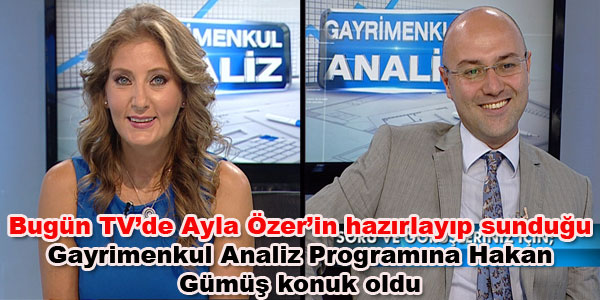 Ayla Özer'in Bügün TV'de her pazar 14:20'de hazırlayıp sunduğu Gayrimenkul Analiz Programının  bu haftaki konuğu EA İnşaat Yönetim Kurulu Üyesi Hakan Gümüş oldu.