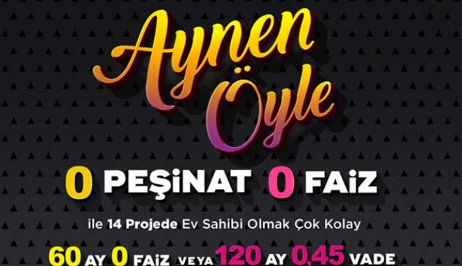 Sur Yapı'nın hayata geçirdiği; Ümraniye’deki Exen İstanbul ve Şehir Konakları, Sultanbeyli’deki Gölbahçe Evleri ile İlkbahar 1 ve İlkbahar 2, Sancaktepe'deki  Lavender, Maltepe’deki Yeşilmavi, Kadıköy Koşuyolu’ndaki Excellence, Kâğıthane’deki Tempo City, Topkapı Evleri, Bağcılar Güneşli’deki Mirage Rezidans, Eyüp’teki Axis Ofis, Avcılar Ispartakule’deki Bahçeyaka ve Bursa Nilüfer'deki Marka Rezidans projelerinde 11 mayısta başlayan "Aynen Öyle" kampanyası 24 haziran cumartesi akşamı sona eriyor. Toplam 500 daire ile sınırlı olan kampanya ile birlikte; hiç peşinat ödemesi olmadan 60 ay 0 faiz' veya 120 ay 0.45 vadelendirme farkı oranlarıyla yatırım yapma fırsatı sunuluyor.