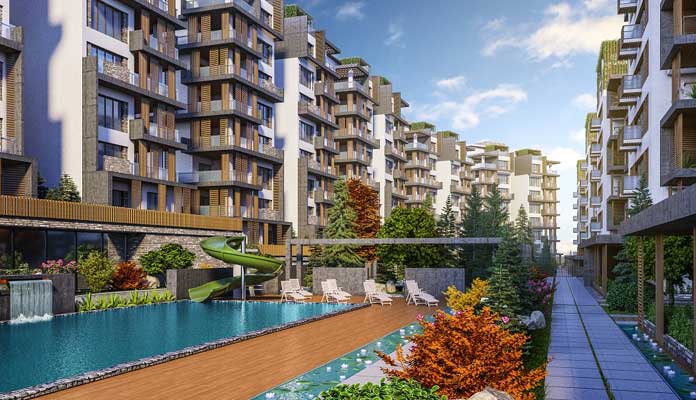 Projede; 34’ü 2+1, 82’si 3+1, 60’ı 4+1 ve 22’si de 4+1 dubleks kat planlarında olmak üzere toplam 198 daire ve 3 bin 200 metrekarelik alan üzerinde ticari mağazalardan oluşan bir alışveriş caddesi inşa ediliyor.
