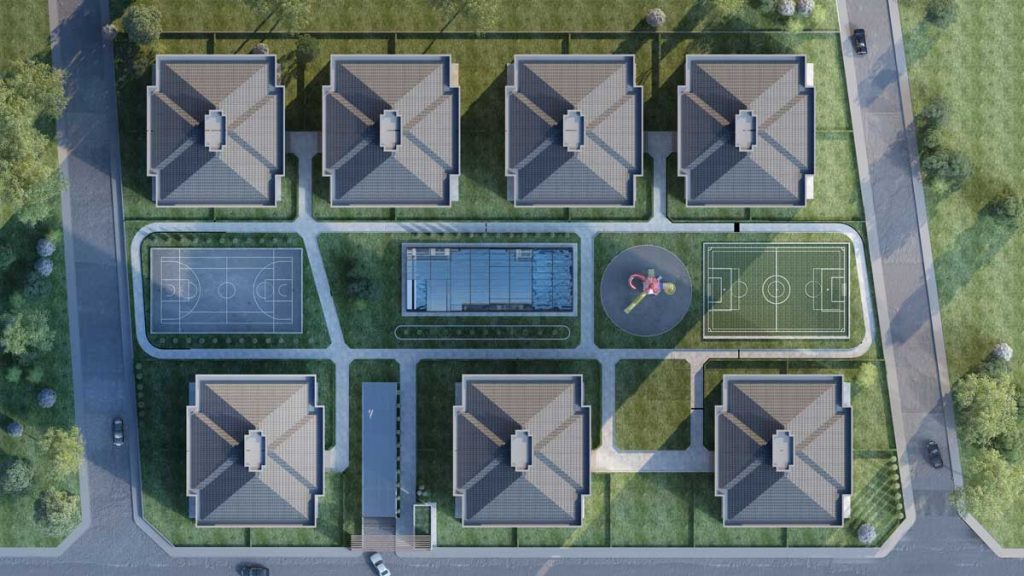 Köşe dubleks, orta dubleks ve normal olmak üzere tamamı 3+1 kat planında 206 daireden oluşan projenin özellikleri ve sosyal donatı alanları şöyle: