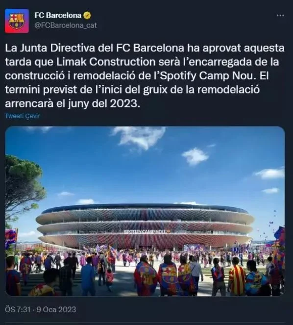 Barcelona’nın stadı Nou Camp’ın yenilenmesi projesinin Limak İnşaat tarafından gerçekleştirileceği açıklandı.