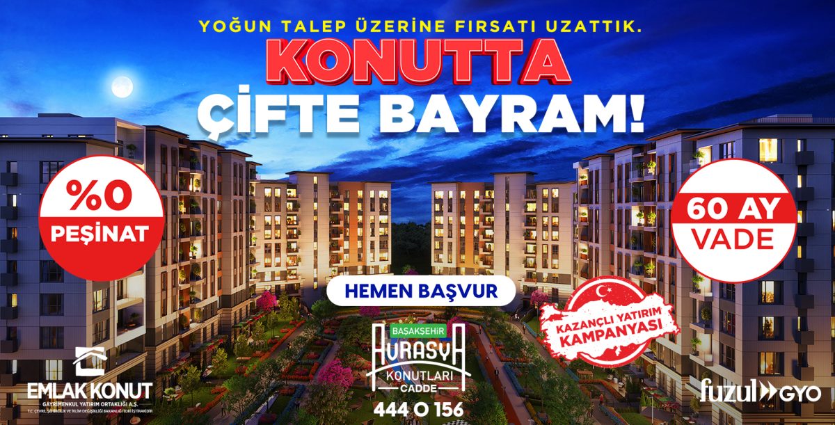 Emlak Konut GYO’nun süresi 27 nisana kadar uzatılan “Kazançlı Yatırım Kampanyası” kapsamındaki projelerden olan Başakşehir Avrasya Konutları Cadde’de “0” peşinat, 60 ay vade kampanyası devam ediyor..