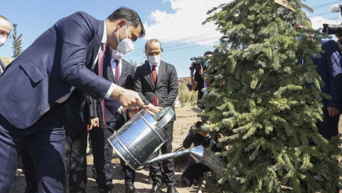 Konuşmaların ardından Bakan Kurum ve beraberindekiler Sincan Belören Millet Bahçesi’ne ilk çam fidanını dikti.