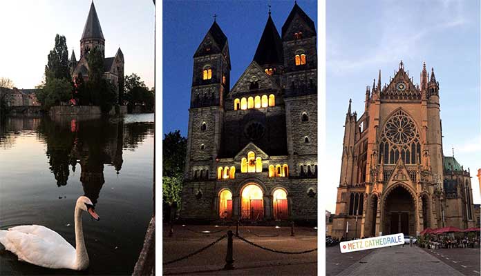 Lüksemburg’dan 1 saat uzaklıkta yer alan Metz bence gizli kalmış doğa harikası bir yer. Garip bir şekilde şehrin merkezini bulmakta çok zorlandık. Lüksemburg’dan sonra buraya geldiğimiz için çok detaylı gezemedik. Yine de gitmeden önceki araştırmalarım ve oradaki gözlemlerime dayanarak söylüyorum bence görülmesi gereken 3 yer vardı; Seille, Mez Katedrali ve Temple Neuf. Özellikle Temple Neuf böyle fotoğraf çekmeye doyamayacağınız bir yer ve orada müthiş bir wallpaper çektiğimi düşünüyorum (ki yazının altına koyacağım.) Ancak akşam yemeği için gece 10’a kalmanızı önermem çünkü burada o saatte servisler kapanıyor ve sadece içki servisi yapıyorlar. Yani kimse bize yemek vermedi maalesef ama o sırada otele gitmek benim için yemek yemekten daha önemliydi neyse ki.