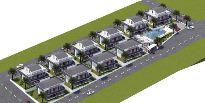 Projede; brüt 200 metrekare büyüklüğünde ve tamamı 4+1 kat planında 2 katlı 20 villa bulunuyor.