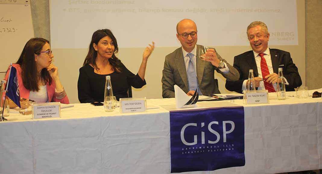 GİSP tarafından düzenlenen ve Bina Tamamlama Sigortaları ve İskan Ruhsatı konularının ele alındığı yuvarlak masa toplantısının konukları Gümrük ve Ticaret Bakanlığı’ndan Derya Güngör Özçelebi, Nova Grup Holding’ten Müjdat Güler, Rosenberg&Parker Surety’den Meltem Gezen ve GİSP Üyesi ve Gayrimenkul Hukuku Uzmanı Avukat Nazım Kurt oldu.