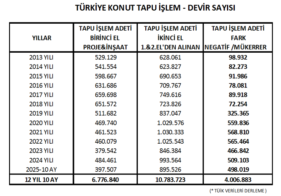 Bu durum aslında; KONUT MÜLKİYET SAHİPLİĞİNİN SÜRESİNİN KISALDIĞININ VE AYNI KONUTUN DEFALARCA SATILDIĞININ GÖSTERGESİDİR.