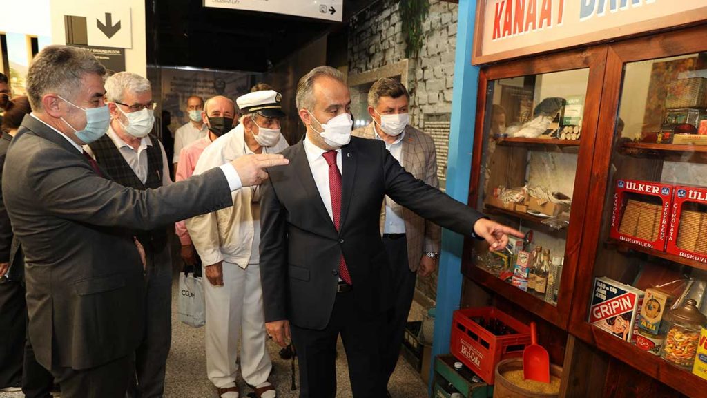 Başkan Aktaş, konuşmasının ardından sergiye sağladıkları katkılar nedeniyle Bursa’nın köklü firmalarının temsilcilerine teşekkür belgelerini verdi. Açılış kurdelesini kesen Başkan Aktaş, daha sonra protokol üyeleri ve davetlilerle birlikte bakkal dükkanı, kahvehane, aktar, berber gibi o yılların esnafının görsellerle canlandırıldığı stantları gezdi. Simit, gazoz ve şeker satan çocuklardan alışveriş yapan Başkan Aktaş, çocukluk yıllarında mahallesinde yaşadığı anılarını da ziyaretçilerle paylaştı.