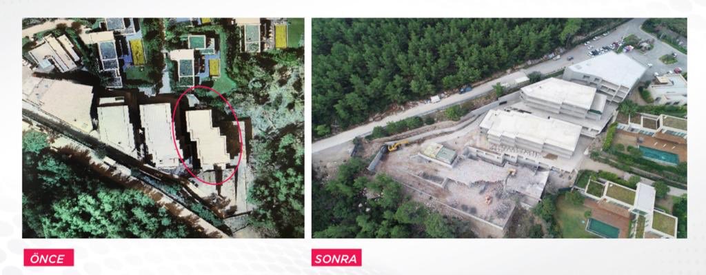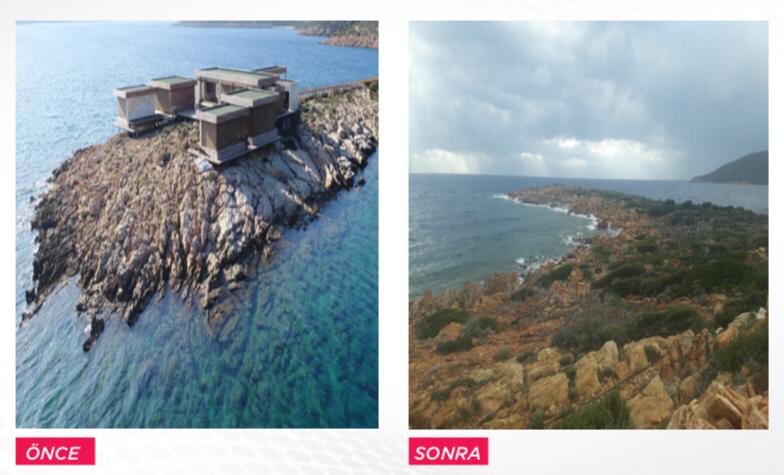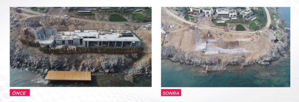 Çevre ve Şehircilik Bakanı Murat Kurum bugün sosyal medya hesabından yaptığı paylaşımla Bodrum’daki kaçak yapıların akibetleriyle ilgili açıklamalarda bulundu ve imara aykırı yerlerin önceki ve sonraki hallerini resimlerle gösterdi.