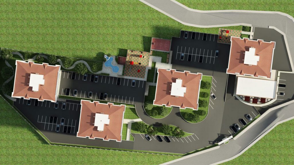 Proje, 2+1, 3+1 ve 4+1 kat planlarında 184 daireden ve ticari alanlardan oluşuyor.