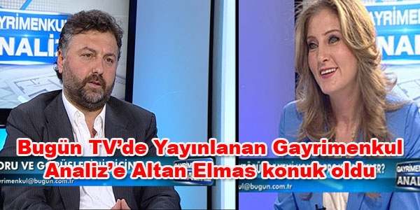 Bugün TV'de her pazar 14:20 de yayınlanan Ayla Özer'in hazırlayıp sunduğu Gayrimenkul Analiz Programına13 Mayıs Pazar günü Sur Yapı Yönetim Kurulu Başkanı Altan Elmas Konuk oldu.