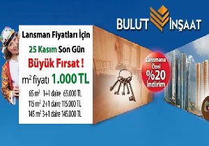 Bulut İnşaat'tan Lansmana Özel Kampanya içiğn son gün 25 Kasım..Ürettiği projelerle adından söz ettiren Bulut İnşaat, Son kampanyasıyla yine çok konuşuluyor.