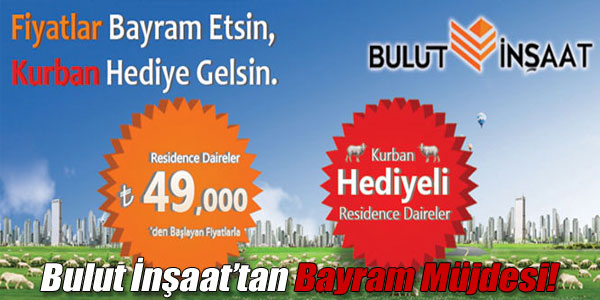 Bulut İnşaat, tüm Evviva projelerinde geçerli olacak 49.000 TL’den başlayan fiyatlar ile bu bayramda da müşterilerini hem ev sahibi yapmak hem de bayram sevincine katkıda bulunmak için kurbanlık hediye ediyor.