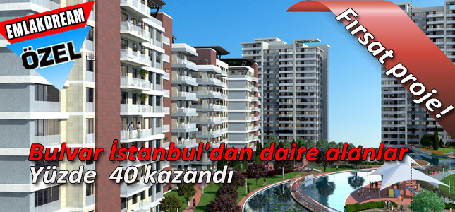 Emlak Konut GYO ile Bulvar İstanbul İş Ortaklığı tarafından İstanbul'un hızla gelişen bölgesi Başakşehir’de hayata geçirilen Bulvar İstanbul projesinden konut alanlar yüzde 40 kazandı.Yaklaşık yüzde 70 oranında satışı gerçekleşmiş olan projenin teslim tarihi olan 2016 yılı ilk çeğreğine kadar minimum yüzde 40 daha pirim yapması bekleniyor.Şu anda metrekare fiyatları 2.900 TL olan projede metrekare fiyatlarını 4.500 TL'ye gelmesi bekleniyor.Bulvar İstanbul projesinin fiyatları 364 bin TL’den başlıyor.