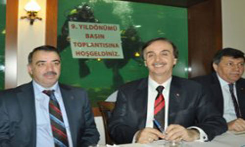 Bursa'nın merkez Yıldırım İlçesi Belediye Başkanı Özgen Keskin'in 9 yıllık icraatlarını ve ilçede uygulanacak kentsel dönüşüm projesini anlattığı Cazibe Merkezi'ndeki toplantıda, dalgıçlar başkanın arkasındaki akvaryumda "9'uncu yıl dönümü basın toplantısına hoşgeldiniz" pankartı açtı.