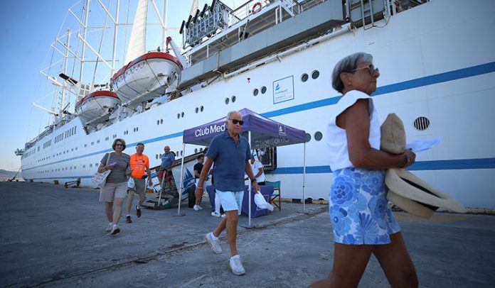 “En son yanaşan Fransız bayraklı 187 metre uzunluğundaki ‘Club Med-2’ gemisi, dünyanın en büyük yelkenli yolcu gemilerinden. 5 yelkene sahip olan en büyük gemi olarak biliniyor. Toplam 305 yolcu kapasitesi var, 302 yolcu var bugün gemide. 201 civarında da mürettebata sahip. Geminin yaklaşık olarak 21 gün süren bir seyri var. Fransa’nın Nice Limanı’ndan yola çıktı. İtalya limanlarına uğradıktan sonra Yunanistan, sonrasında Bozcaada ve İstanbul’a uğradıktan sonra bizim limanımıza geldiler. Buradan da Kuşadası’na devam edecek. Oradan da tekrar İsrail’e uğradıktan sonra Yunanistan’da tekrar tur sona ermiş olacak.