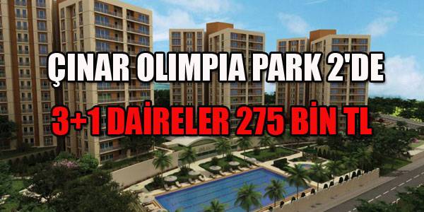 İstanbul Bağcılar'da hayata geçirilen Çınar Olimpia Park 2 projesinde konutlar 275 bin lira ila 335 bin lira alasında değişen fiyatlarla satışa sunuluyor. Oturumun başladığı projede 3+1 tipinde toplam 196 konut bulunuyor.