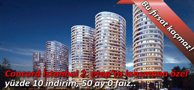 Yaklaşık 650 milyon liralık bir büyüklükte olan Concord İstanbul 2. etap Mart 2015’de başlayacak ve 36 aylık süre içinde tamamlanacak.